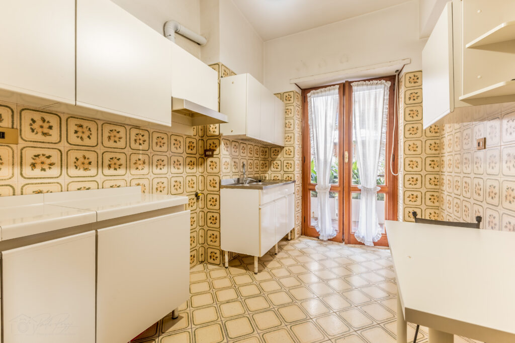 L’immobile si compone di ingresso, ampio salone che si affaccia sul terrazzo, tre camere da letto, doppi servizi con finestra, cucina abitabile, balcone e balcone di servizio.